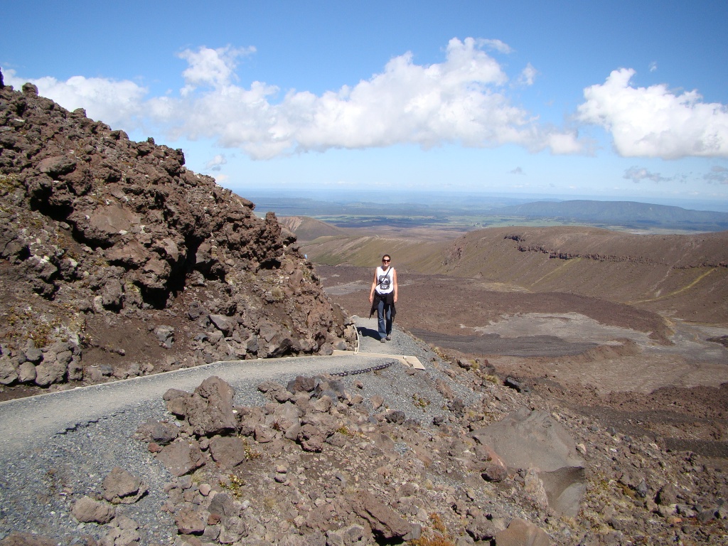 After 4 days in the capital, we headed towards the Tongariro National Park (the oldest park in New Zealand), which is located in the middle of the North Island. The park consists of 3 main volcanoes and a 12-mile alpine crossing that’s considered to be the best day hike in the country. Needless to say we wanted to see what the hype was all about. The hike usually takes 7 – 9 hours to complete and includes an ascent of over 6,100 feet. I’ve never been on a hike that was longer than a couple of hours, so I wasn’t sure what to expect from our day ahead. The hike started out on flat terrain for the first 1 – 2 hours which was all gravy. We enjoyed the cool breeze on a beautifully sunny day with few clouds in the sky. All around us volcanic rocks covered the landscape with patches of intermittent vegetation. Then for the next hour or so we hit a taxing incline where pausing every few minutes became the norm. But with the altitude came the intimate and real beauty of the surroundings. The inhospitable landscape put on its best impression of a lunar surface – grey, dusty and volcanic. To our right stood Mt. Ngauruhoe, a 7,500 foot tall active volcano, tempting some of the more seasoned hikers towards its lips. We admired their efforts and watched them get reduced to the size of peas on their way to the top. But for us it was “March on” continuing on our trail to the South Crater, where a huge plateau posed as a very welcoming sight. No more climbing.. at least not for the ensuing half hour. Crossing through marked the mid-way point of our hike but also the start of another and more rugged incline. Slowly we pushed on and came face to face with the Red Crater, a smaller opening that lived up to its name. Reddish in color and partially torn (at what appeared to be lips), the crater served as a reminder of the area’s furious spit-up many many years ago. Although no major eruptions have occurred in the area since 2007, these were still active volcanoes which was pretty amazing – functioning ears and mouths to the inner rumblings of the earth. Passing through marked the highest point of our hike and so it was all downhill from there. This of course made us extremely happy. To accompany our elation, the afternoon’s most magnificent panorama came to life. 3 bright-green sulfuric lakes lit up the landscape and drew every hiker’s maximum attention – so majestic yet so treacherous. The beautiful lakes (known as the Emerald Lakes) are devoid of life because of the high sulfur content which filled our nostrils with that rotten egg smell. A perfect spot for lunch! The view trumped the smell and so we paused for 10 minutes to refuel and take it all in. This was volcano country, no doubt about it. The rugged landscape extended in all directions with severed mountain tops competing for top volcano. The distant snow-capped Taranaki took that title, adding to the incredible setting. Our descent lasted about 2.5 hours terminating with an animated hike through the bush. By this point our feet were ready to burst while our legs felt like cement blocks. But we stuck it out and completed the hike in 7 hours. Brigitte’s “post-game” rap was that this was more exercise than she had done all year. I was genuinely proud.
