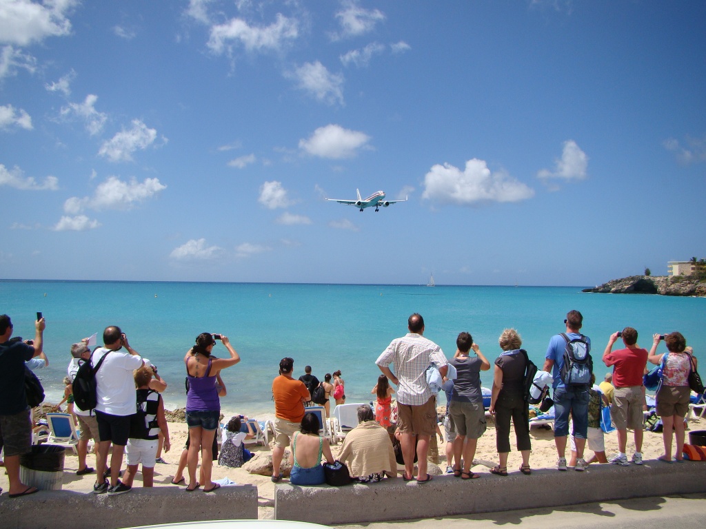 The St. Martin experience begins with the actual landing at Princess Juliana Airport in Sint Maarten (the Dutch side of the island). On approach to landing you can see the beautiful turquoise waters of the Caribbean sea from either side of the plane, which always has someone on-board “wow’ing” emphatically. Then as the plane descends for touchdown and looks to be landing “on water”, the welcoming sound of rubber screeching over cement finally emanates from down below. Nothing out of the ordinary here, just standard procedure. But being a spectator to the landing show from outside the plane is quite a different story, often times leaving people in awe or blaring out a mouth-full of obscenities. Maho Beach is the stage to this incredible show and happens to be in intimate proximity of the airport’s short landing strip. Each day it’s packed with beach goers primed with cameras and camcorders every time a plane (especially a large jet), approaches for landing and seems to hang just feet over everyone’s head. It’s totally surreal!